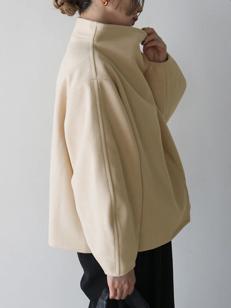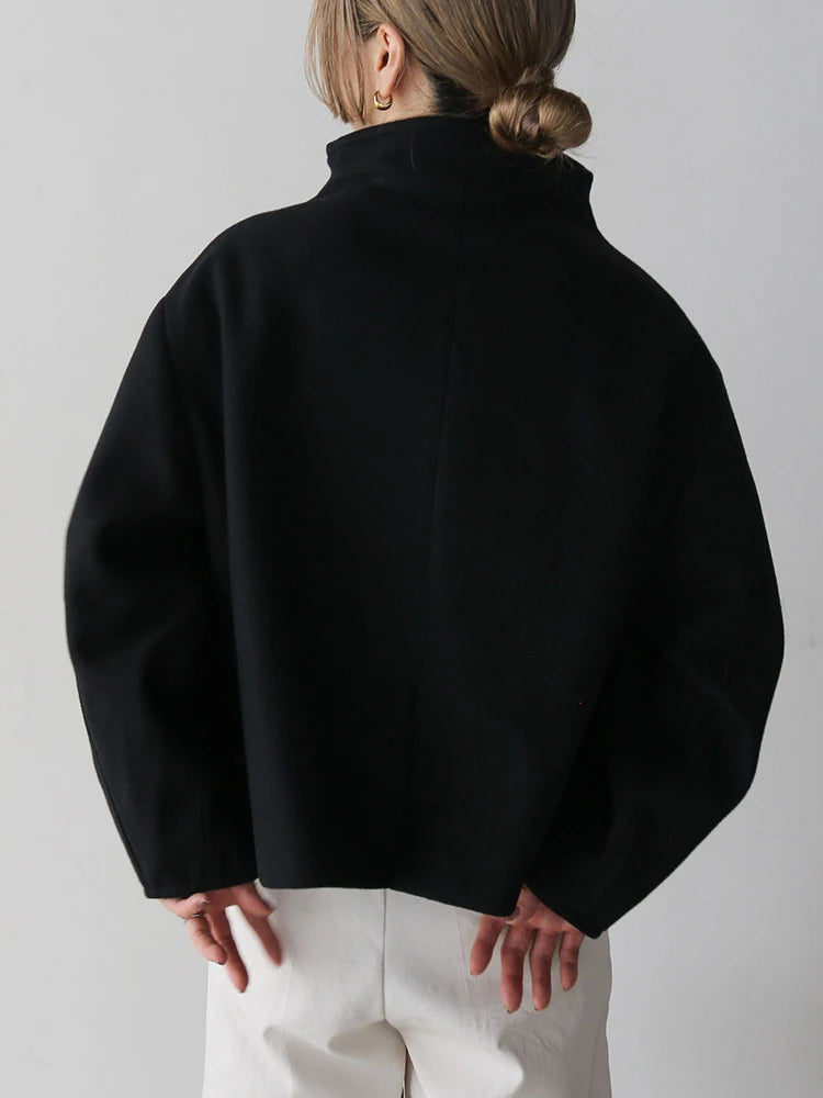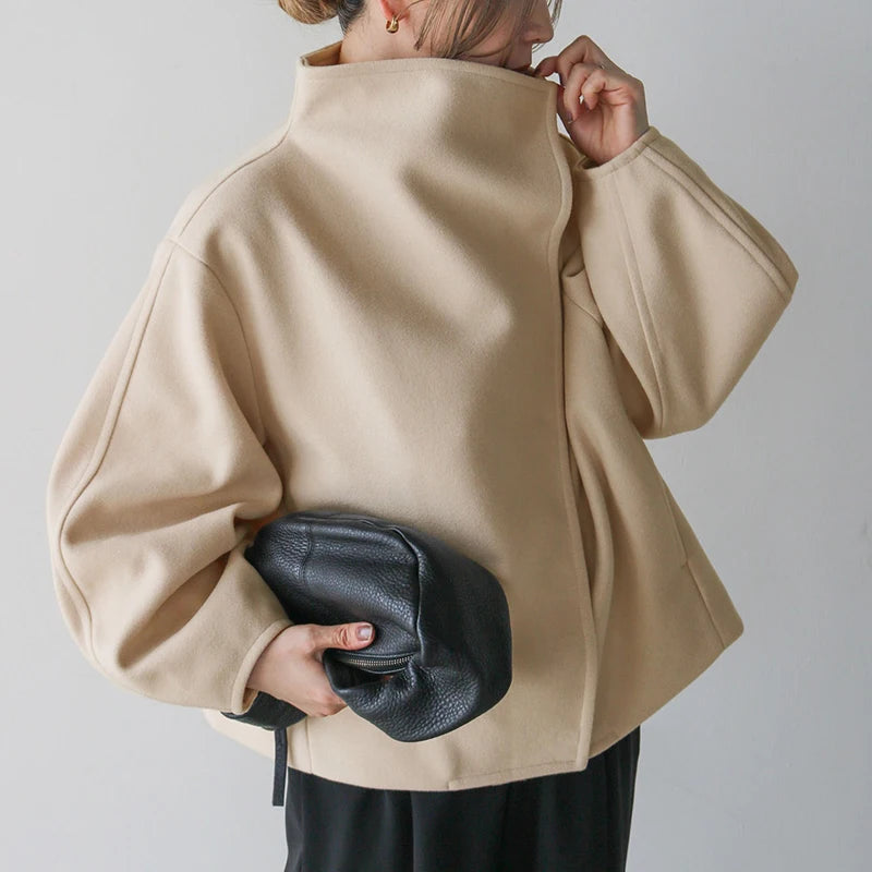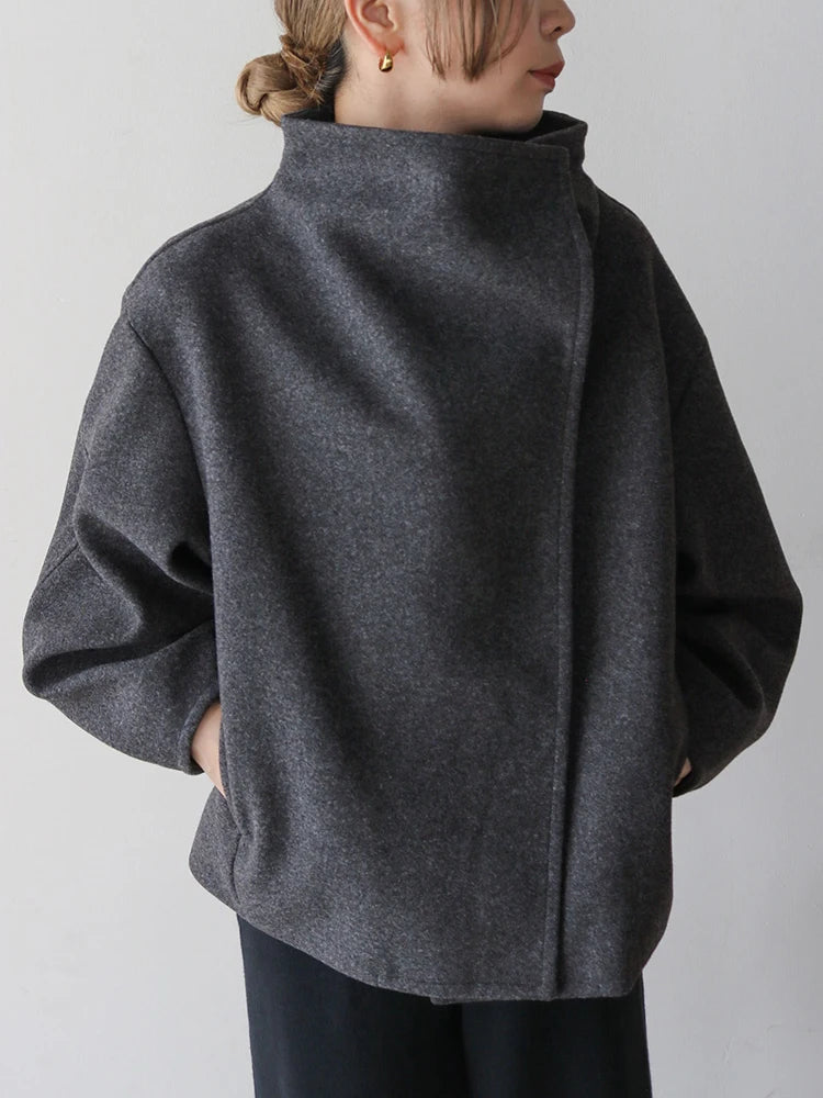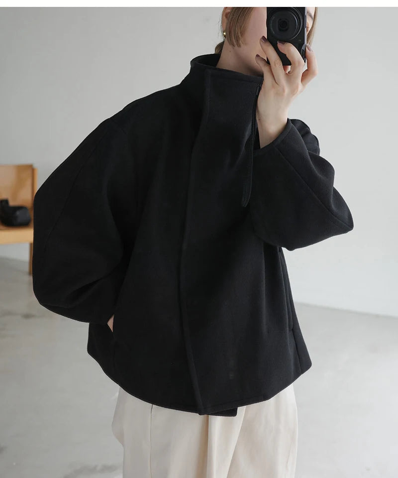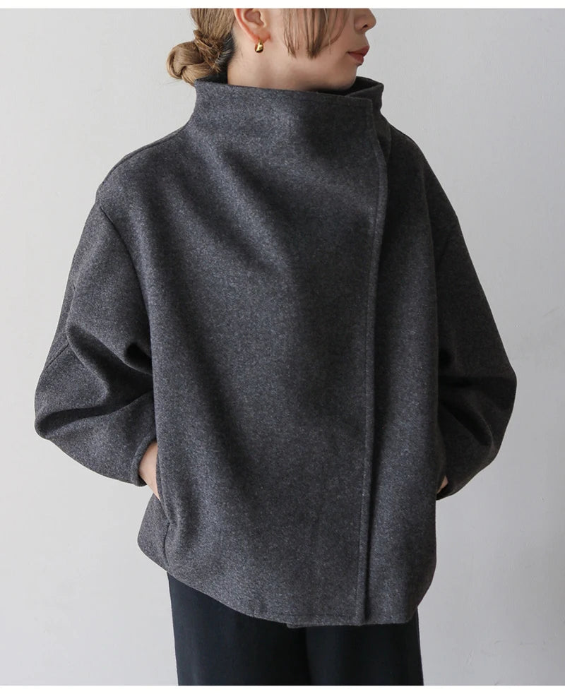 A cashmere modern turtle neck button up jacket
